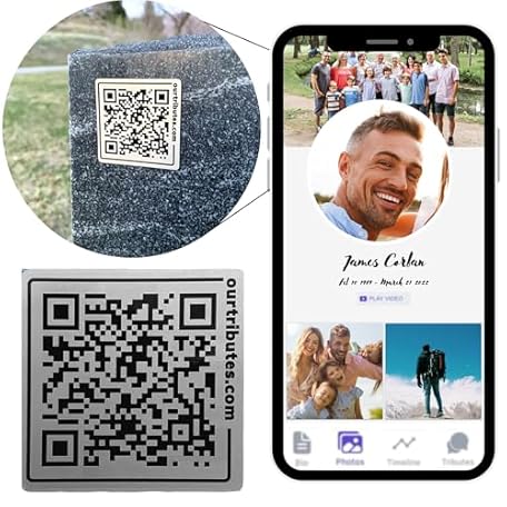 Stainless Steel QR Memorial Plaque for Cemetery Headstone – 100-Year Durability | Online Memorial Page to Collect Photos, Stories & Messages | Bereavement Gift