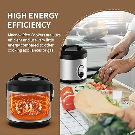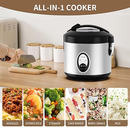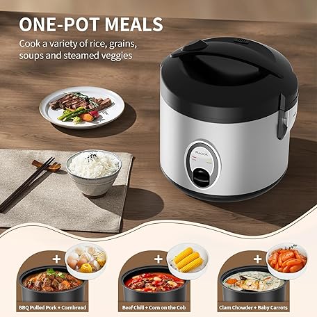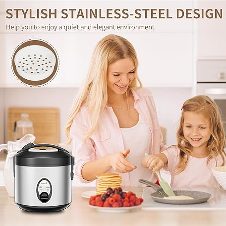 Stainless Steel Rice Cooker with Steamer, 4-Cup Uncooked (1.0L)/8-Cup Cooked, Electric Grain & Vegetable Cooker, Auto Keep Warm for Oatmeal, Soups & Multicooking