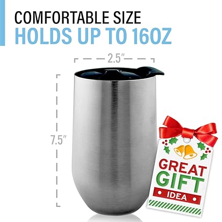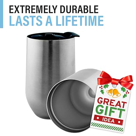 Thông tin sản phẩm Stainless Steel Wine Glasses with Lid - Set of 4-17 oz Double Wall Insulated Outdoor Wine Tumblers - 100% Unbreakable & Stemless Glass - Wine Tumbler Set for Outdoor : Wine, Coffee & Camping
