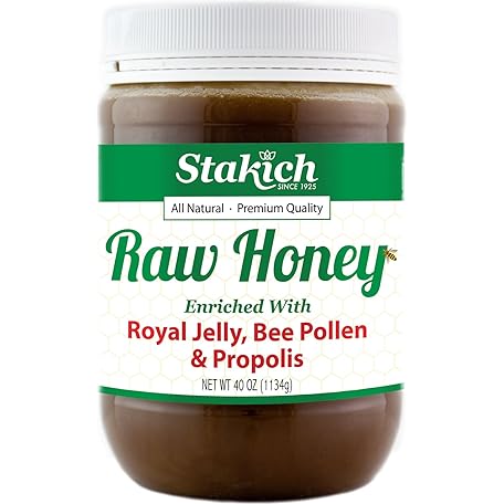 Sản phẩm Stakich Royal Jelly, Bee Pollen, Propolis Raw Honey - Pure, Unprocessed, Unheated - 40 Ounce đang được bán với giá ưu đãi là $39.1855 tại nước Mỹ.