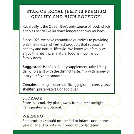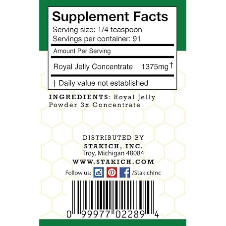 Thông tin sản phẩm Stakich Royal Jelly Powder - 4 Ounce - 3X Concentrate - Freeze Dried, Pure, Natural