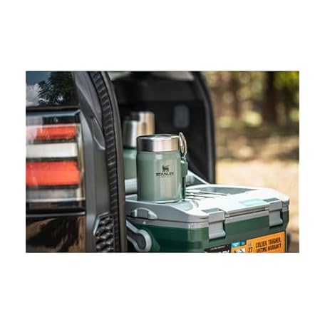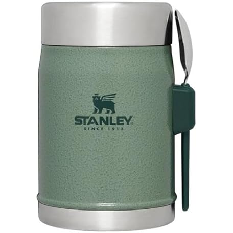 Sản phẩm Stanley Classic Food Jar and Spork 14 oz | Vacuum Insulated Food Container | Wide Mouth Screw On Lid | Packable for Travel | Stainless Steel with Leakproof Lid | BPA-Free | Hammertone Green đang được bán với giá ưu đãi là $30.52 tại nước Mỹ.