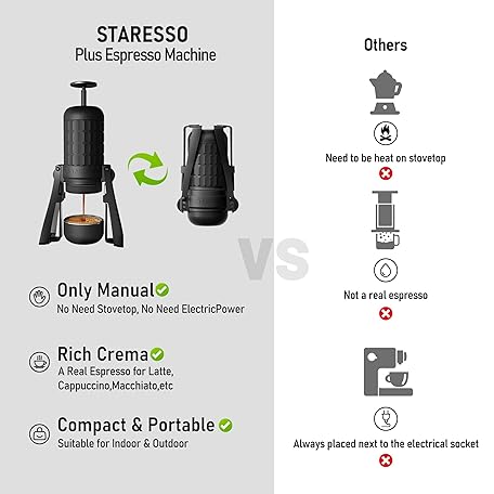 Thông tin sản phẩm STARESSO PLUS SP300 Espresso Machine, Manual Portable Coffee Maker Compatible Ground Coffee with Pressurized Filter, Espresso Maker for Home Travel Camping Office, Non-Electric