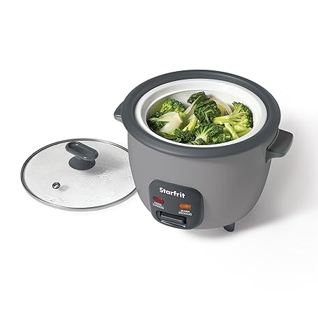 • Starfrit 10-Cup Rice Cooker with Ceramic Coating - PFAS-Free - Clear Glass Lid- Grey