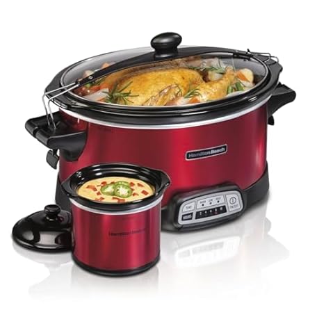 Stay or Go Programmable Slow Cooker with Party Dipper, 7 Quart Capacity, Removable Crock, Red,
