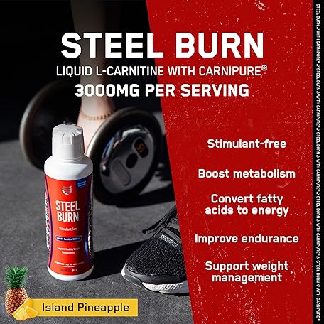 SteelFit Steel Burn, Premium Liquid L-Carnitine, 3000mg - Stimulant-Free & Clean Workout Drink for Men & Women Supports Healthy Weight Loss Management & Fat Metabolism - 31 Servings, Island Pineapple