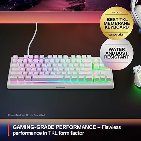 Sản phẩm SteelSeries Apex 3 TKL White RGB Gaming Keyboard — Tenkeyless Compact Form Factor — 8-Zone RGB Illumination — Water and Dust Resistant — Whisper-Quiet Gaming Switch đang được bán với giá ưu đãi là $54.4891 tại nước Mỹ.