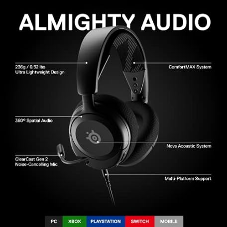Thông tin sản phẩm SteelSeries Arctis Nova 1 Multi-System Gaming Headset — Hi-Fi Drivers — 360° Spatial Audio — Comfort Design — Durable — Ultra Lightweight — Noise-Cancelling Mic — PC, PS5/PS4, Switch, Xbox - Black