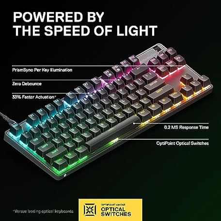 Sản phẩm SteelSeries New Apex 9 TKL – HotSwap Optical Mini Keyboard – TKL Esports Design – Optical Switches – RGB Customization – Aluminum Alloy Frame – Double Shot PBT Keycaps đang được bán với giá ưu đãi là $119.8891 tại nước Mỹ.