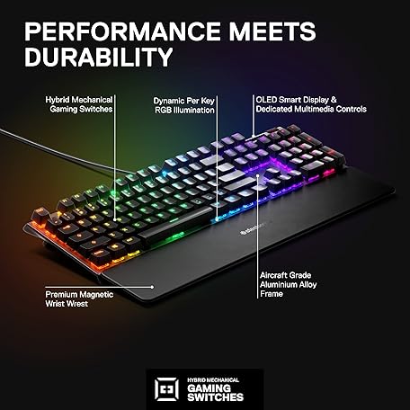 Thương hiệu SteelSeries là cái tên nổi tiếng được rất nhiều khách hàng trên thế giới chọn lựa. Với kiểu dáng đẹp mắt, sang trọng, sản phẩm SteelSeries USB Apex 5 Hybrid Mechanical Gaming Keyboard – Per-Key RGB Illumination – Aircraft Grade Aluminum Alloy Frame – OLED Smart Display (Hybrid Blue Switch) là sự lựa chọn hoàn hảo nếu bạn đang tìm mua một món cho riêng mình.