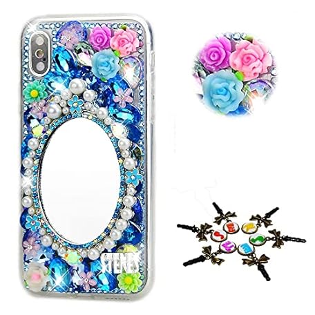 STENES Sparkle Case Compatible with Samsung Galaxy A10s - Stylish - 3D Handmade Bling Girls Mirror Flowers Rhinestone Crystal Diamond Design Cover Case - Blue