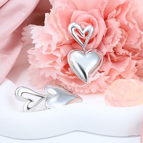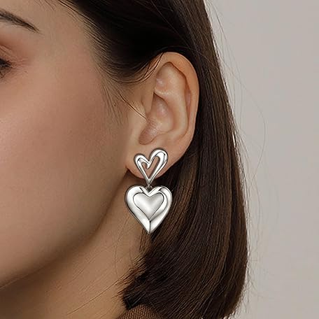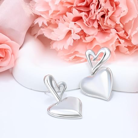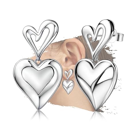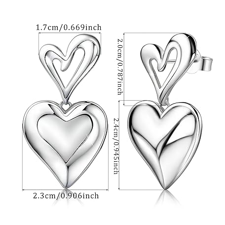 Sản phẩm Sterling Silver Statement Stud Earrings for Women Fashion Chunky Hypoallergenic Love Heart Stud Earrings with Dangle for Sensitive Ears for Women đang được bán với giá ưu đãi là $15.2491 tại nước Mỹ.