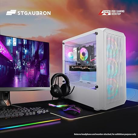 Thông tin sản phẩm STGAubron Gaming PC Computer Desktop, AMD Ryzen 5 2600 up to 3.9G, GeForce RTX 3050 6G, 16GB DDR4, 1TB SSD, WiFi 6, BT 5.2, RGB Fan x4, Windows 11 Home