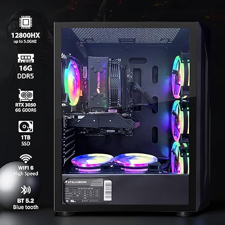 STGAubron Gaming PC Computer Desktop, Intel Core i7-12800HX up to 4.8GHz, GeForce RTX 3050 6G, 16G DDR5, 1TB SSD, WiFi 6, BT 5.2, RGB Fan x6, Windows 11 Home