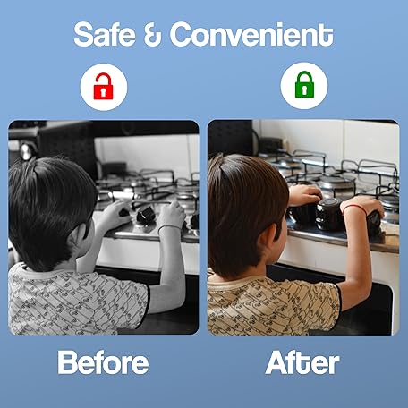 Stove Knob Safety Covers (5 Pack) – Oven Knob Covers for Child Safety – Prevent Kids from Turning on Stoves – Gas Stove Knob Locks with Pre-Applied Adhesive – No Tools Needed for Install