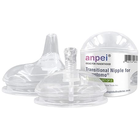 Straw and Sippy Cup Transitional Nipples Set of 2 with Nipple Storage Case Compatible with Comotomo Baby Bottles, 5 oz and 8 oz