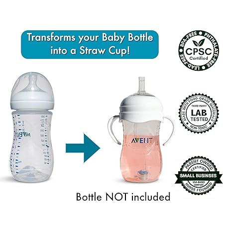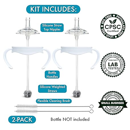 Thông tin sản phẩm Straw Cup Conversion Kit for Philips Avent Natural Baby Bottles 2-Count, Food Grade Silicone Straw Nipples and Weighted Straw, Bottle Handles, Cleaning Brush, BPA-Free, Sippy Transition, 6+ Months