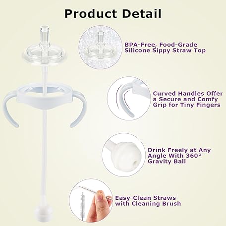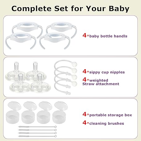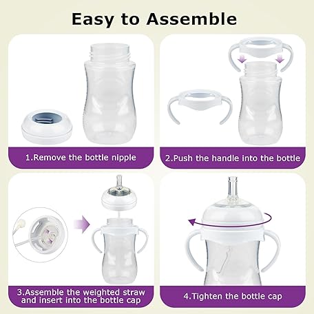 Straw Cup Conversion Kit for Philips Avent Natural Baby Bottles,Weighted Straw Sippy Cup Transition Kit with Soft Nipple and Handles for Toddler, Pack of 4
