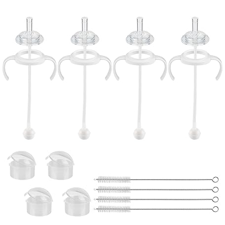 Straw Cup Conversion Kit for Pigeon Bottles,Glass Baby Bottle Transition Kit with Weighted Straw, Soft Straw Nipples & Easy-Grip Handle, 8m+, 4-Pack