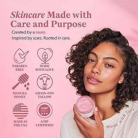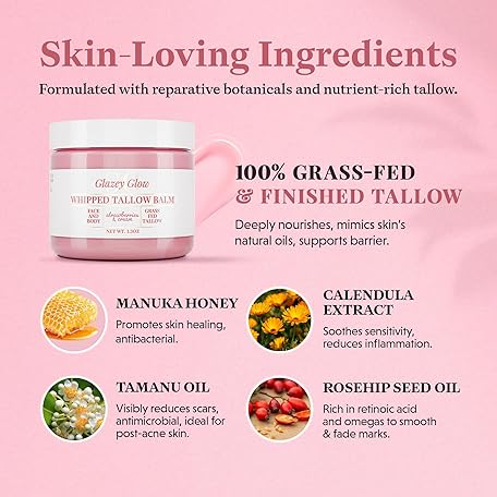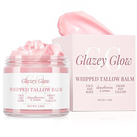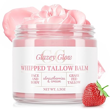 Strawberries & Cream Whipped Tallow Balm – 1.3oz | Grass-Fed Tallow Moisturizer with Rosehip, Tamanu & Vitamin E | Natural Face & Body Balm for Dry Skin & Smooth, Healthy-Looking Skin