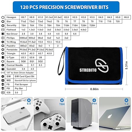 Thông tin sản phẩm STREBITO Electronics Precision Screwdriver Sets 142-Piece with 120 Bits Magnetic Repair Tool Kit for iPhone, MacBook, Computer, Laptop, PC, Tablet, PS4, Xbox, Nintendo, Game Console