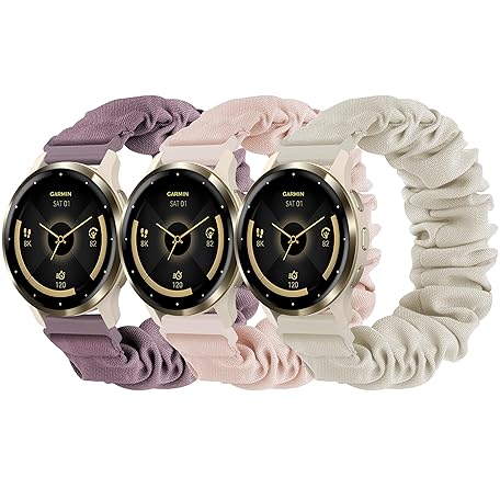 Stretchy Scrunchie Bands Compatible with Garmin Venu 3/Venu 2/Vivoactive 4, 22mm Nylon Sport Elastic Band for Forerunner 265/Forerunner 255 for Women Men(3 Pack )
