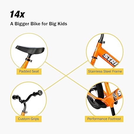 Thông tin sản phẩm Strider 14x, Balance Bike for Kids 3 to 6 Years - Includes Custom Grips, Padded Seat, Performance Footrest & All-Purpose Tires - Easy Assembly & Adjustments