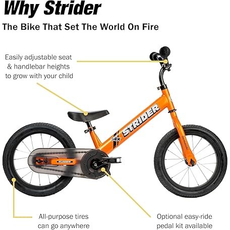 Thương hiệu Strider là cái tên nổi tiếng được rất nhiều khách hàng trên thế giới chọn lựa. Với kiểu dáng đẹp mắt, sang trọng, sản phẩm Strider 14x, Balance Bike for Kids 3 to 6 Years - Includes Custom Grips, Padded Seat, Performance Footrest & All-Purpose Tires - Easy Assembly & Adjustments là sự lựa chọn hoàn hảo nếu bạn đang tìm mua một món cho riêng mình.
