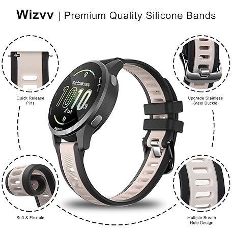 • Stripe Silicone 18mm Band Compatible with Garmin Venu 3S / Venu 2S / Vivoactive 4S/ Vivomove 3S/Venu 4 41mm, Soft Rubber Breathable Sport Strap Quick Release Wristband Loop for Men Women