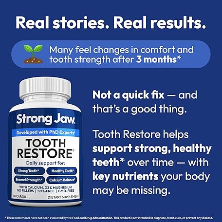 Sản phẩm Strong Jaw Tooth Restore for Adults with Remineralizing Gum Support 180 Capsules Made in USA - Teeth Vitamins for Strong Teeth Bone Health Supplement Calcium Vitamin D3 Hydroxyapatite Enamel Repair đang được bán với giá ưu đãi là $74.0873 tại nước Mỹ.