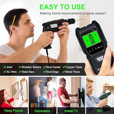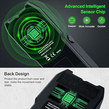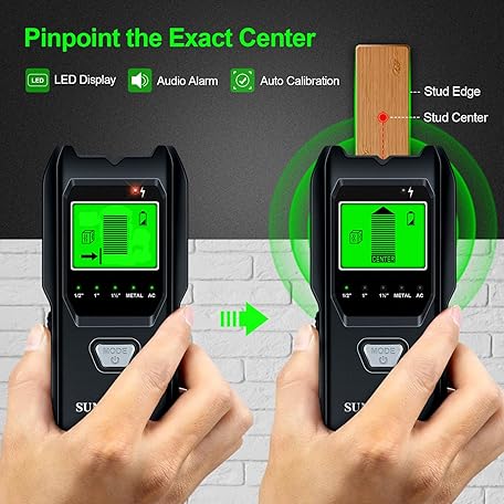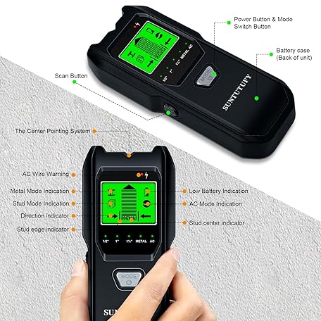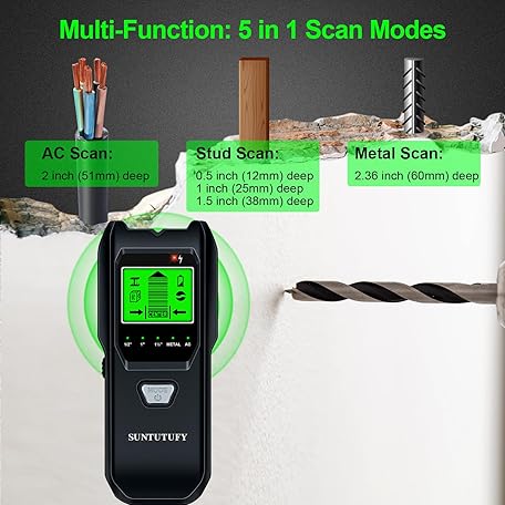 Thông tin sản phẩm Stud Finder Wall Scanner - 5 in 1 Electronic Stud Detector with Upgraded Smart Sensor, Audio Alarm and HD LCD Display for the Center and Edge of Wood, AC Wire, Metal and Studs Detection(Frosted Black)