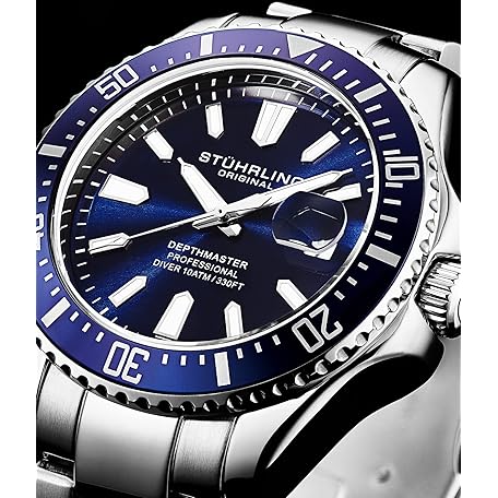 Sản phẩm Stuhrling Original Men's Watches Pro Dive Watch Sports Watch with 42 MM Case Blue Dial Stainless Steel Silver Bracelet Diving Watch for Men đang được bán với giá ưu đãi là $76.2891 tại nước Mỹ.
