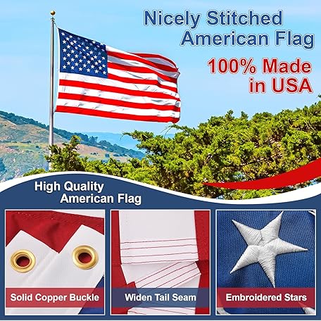 Sturdy American Flag 3x5 Ft Outdoor Heavy Duty,100% Made in USA American Flags ,Non Fading American Flags for Outside 3x5,Embroidered American Flag,3 by 5 America Flags Best High Wind all Weather US Flag,Indestructible America Flag Sewn Stripes and Embroidered Stars