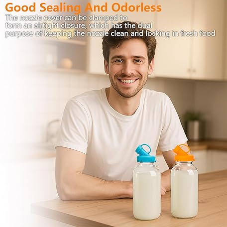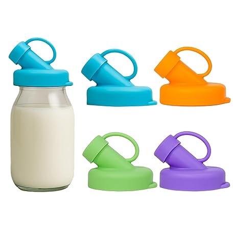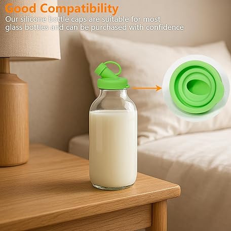Thông tin sản phẩm stuuikf Silicone Milk Bottle Lids 4 Pack - 48mm Leakproof Replacement Caps, Fits Stanpac & Libbey Jugs, Dishwasher & Freezer Safe, BPA-Free (Jug Not Included)