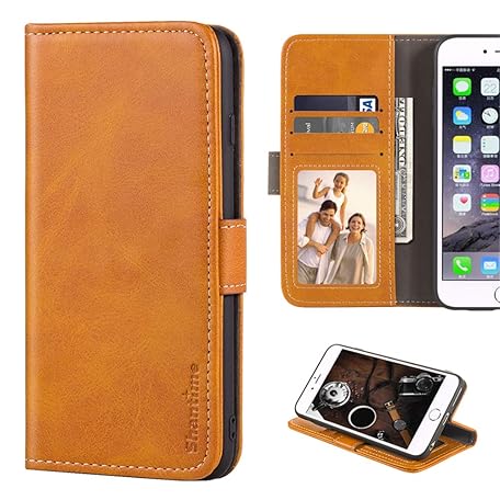 Stylish Leather Wallet Case Compatible with Kyocera Torque G04 KYV46, Magnetic Shockproof Flip Cover with Card Holders, Photo Frame and Kickstand(Light Brown)