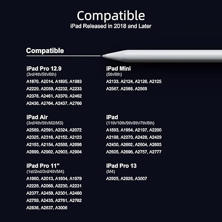 Thông tin sản phẩm Stylus Pen for iPad 6th-11th Generation-2X Fast Charge Active Pencil Compatible with 2018-2025 Apple iPad Pro 11"/12.9"/M4, iPad Air 3/4/5/M2/M3,iPad mini 5/6 Gen-White