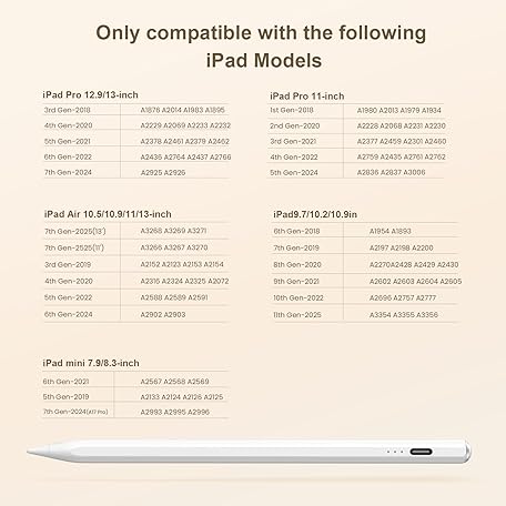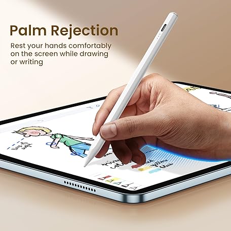 Thông tin sản phẩm Stylus Pen for iPad(2018-2025)-13 Mins Fast Charge with Tilt Sensitivity & Palm Rejection for iPad 11/10/9/8/7/6th Gen, Air 7/6/5/4/3/M3/M2, Pro 13"/12.9"/11"/M4, Mini 7/6/5th, White