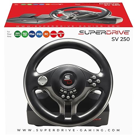 Thương hiệu SUBSONIC là cái tên nổi tiếng được rất nhiều khách hàng trên thế giới chọn lựa. Với kiểu dáng đẹp mắt, sang trọng, sản phẩm SUBSONIC- Superdrive SV250 Steering Wheel with pedals and gearshift paddles Racing Wheel for Nintendo Switch 2 - Switch - PS4 - Xbox Series X/S, Xbox One and PC là sự lựa chọn hoàn hảo nếu bạn đang tìm mua một món cho riêng mình.