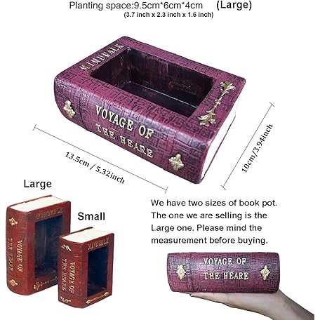 Thông tin sản phẩm Succulent Pots Book Shaped Planter - Cute Resin Flower Pot Bookshelf Decor Creative for Sempervivum with Drainage, Gift for Women, Man, Office, Indoor Plants, Book Lovers, 7.0″x5.0″x2.3″