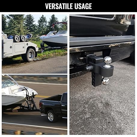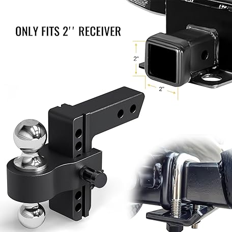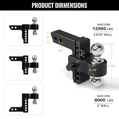 Suemoss Adjustable Trailer Hitch Mount with 2" and 2-5/16" Ball, Fit 2" Receivers, 6" Drop/Rise, 12,500LBS Aluminum Heavy Duty Trailer Hitch for Trucks 1 Hitch Tightener 2 Locking Hitch Pin