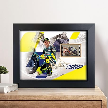 sufenvera Sports Fans Poster - Valentino Rossi Framed Photo with Print Signed and Mini Film Display,MotoGP Collectibles Gifts for Motorcycle Racing Enthusiasts 8x6 Inches
