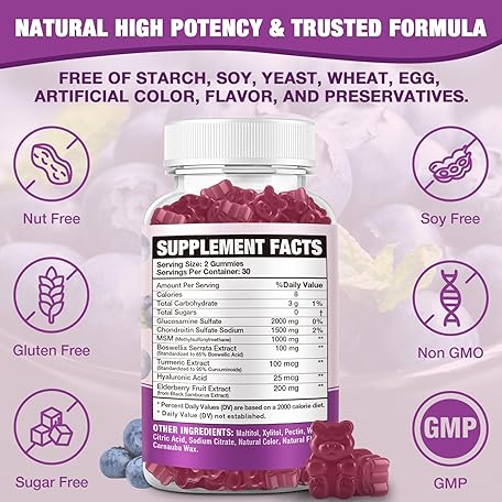 Thông tin sản phẩm Sugar Free 2000mg Glucosamine Chondroitin Gummies, Extra Strength Glucosamine with Chondroitin MSM & Turmeric, Joint Support Supplement, Antioxidant Immune Support - 60 Gummies