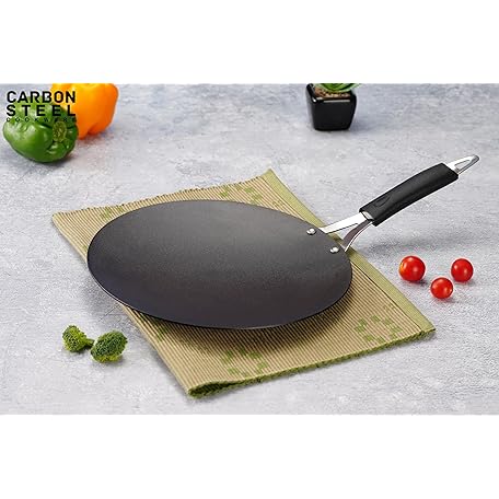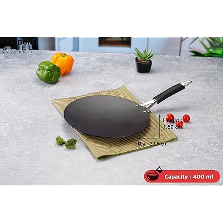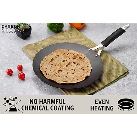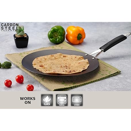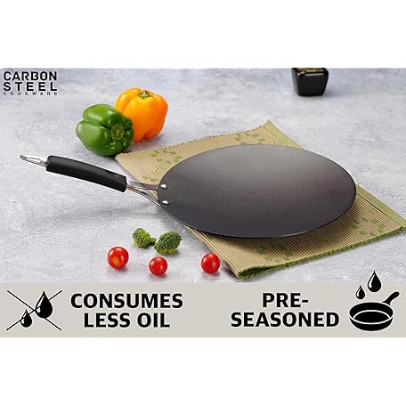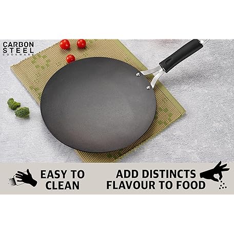 Thông tin sản phẩm Sumeet Super Smooth Pre Seasoned Carbon Steel (Iron) Concave Tawa for Roti, Chapati, Paratha, Chila |Naturally Nonstick |22.5cm, Gas & Induction-Friendly, Black