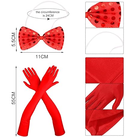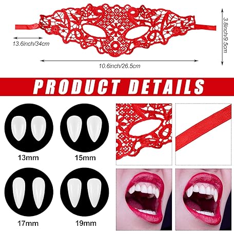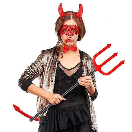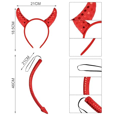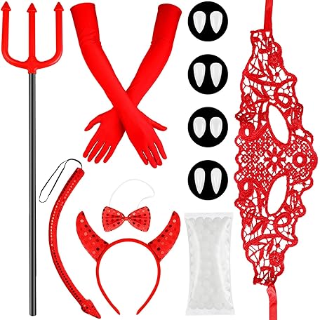 Thông tin sản phẩm Sumind 12 Pieces Halloween Devil Costume Accessories Includes Sequined Devil Horns Headband and Tail, Bow Tie, Red Gloves, Vampire Fake Teeth, Red Lace Eye Mask for Halloween Demon Cosplay Party