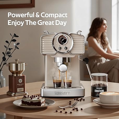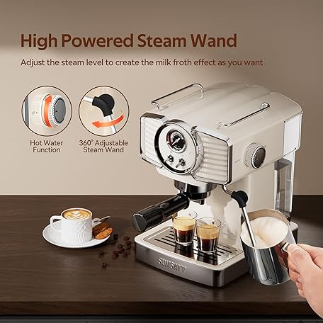 Thông tin sản phẩm SUMSATY Espresso Machine 20 Bar, Professional Espresso Maker with Milk Frother Steamer Wand, Retro Coffee Maker Cappuccino & Latte Machine for Home, 1.8L Removable Water Tank, Off-white