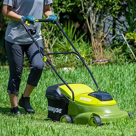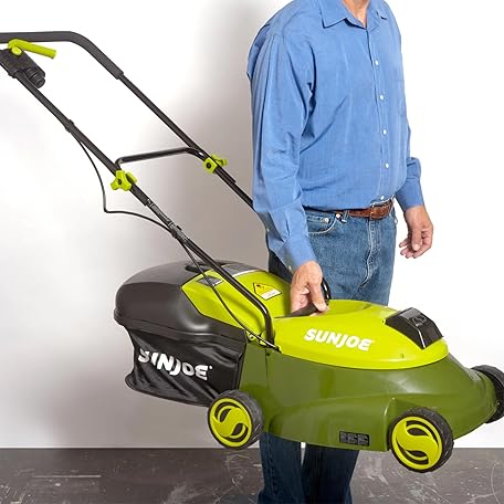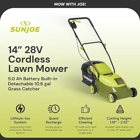 Sun Joe Cordless Lawn Mower, 28V Brushless Motor, 14" Electric Walk Behind Grass Cutter with Safety Key, 10.6 Gal Grass Catcher, MJ401C-XR