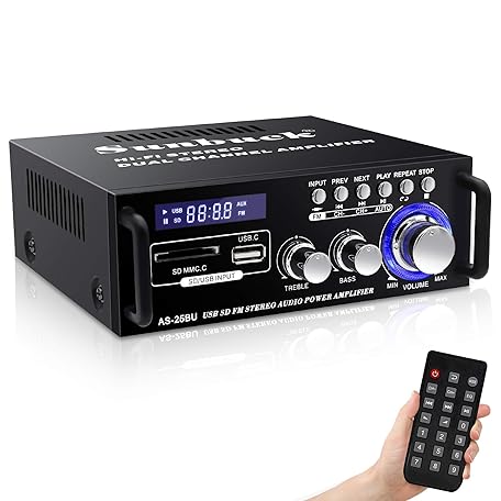 Thương hiệu Sunbuck là cái tên nổi tiếng được rất nhiều khách hàng trên thế giới chọn lựa. Với kiểu dáng đẹp mắt, sang trọng, sản phẩm Sunbuck Small Stereo Amplifier, Stereo Receiver with Bluetooth, Optical/Coaxial Jacks for TV/CD/DVD/LP/PC, Support 192kHz Audio, Max 300Wx2 Power, Home Audio System, Receiver for Speakers, AS-25BU là sự lựa chọn hoàn hảo nếu bạn đang tìm mua một món cho riêng mình.