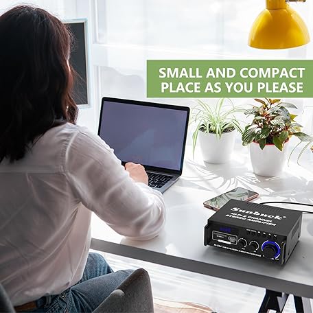 Thông tin sản phẩm Sunbuck Small Stereo Amplifier, Stereo Receiver with Bluetooth, Optical/Coaxial Jacks for TV/CD/DVD/LP/PC, Support 192kHz Audio, Max 300Wx2 Power, Home Audio System, Receiver for Speakers, AS-25BU