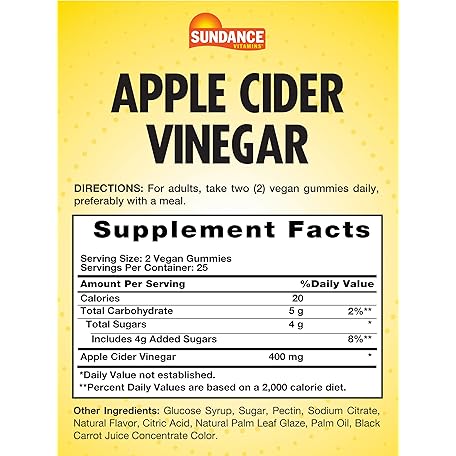 Thông tin sản phẩm Sundance Apple Cider Vinegar Gummies | 50 Count | Apple Flavor | Vegan, Non-GMO, and Gluten Free Supplement