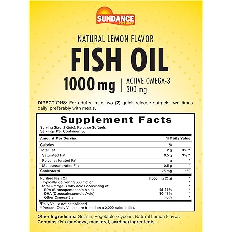 Sản phẩm Sundance Fish Oil Softgels 1000mg | 120 Count | Purified to Eliminate Mercury | with 300mg Active Omega-3 | Natural Lemon Flavor | Non-GMO and Gluten Free Supplement đang được bán với giá ưu đãi là $14.2245 tại nước Mỹ.